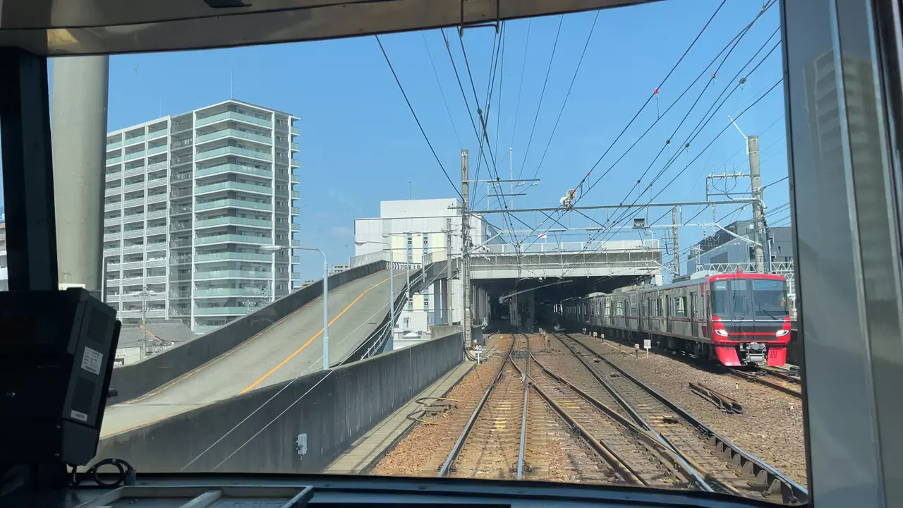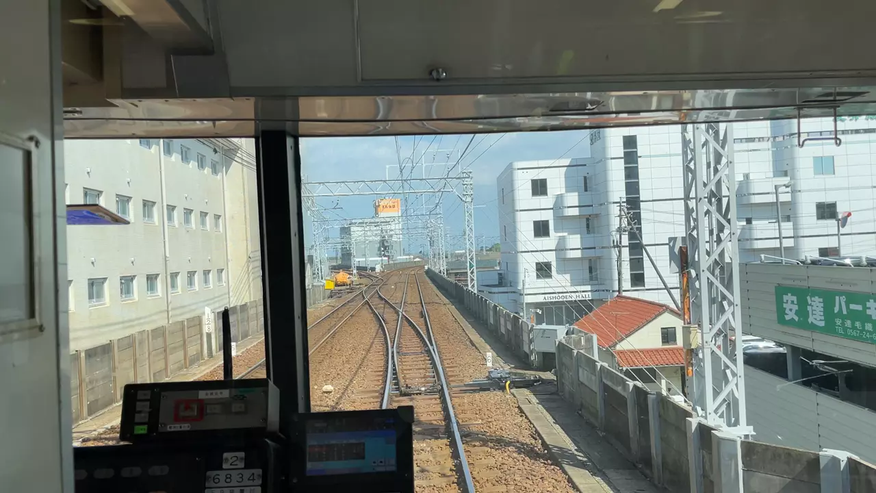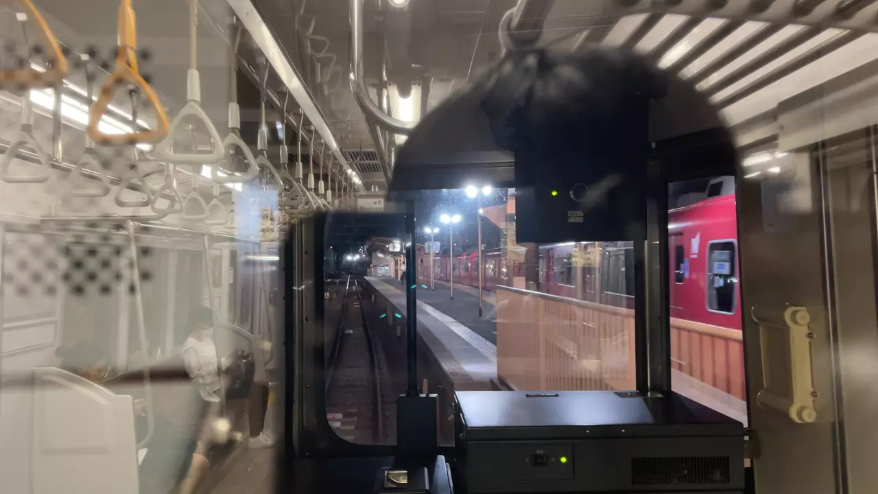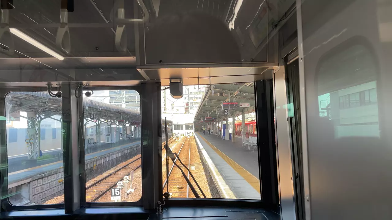 乗り込む列車の神宮前方には別に2両編成の電車が縦列で停まっていました。高架化がされた後でもこのような光景が見れるのは、さすが名鉄ですね。