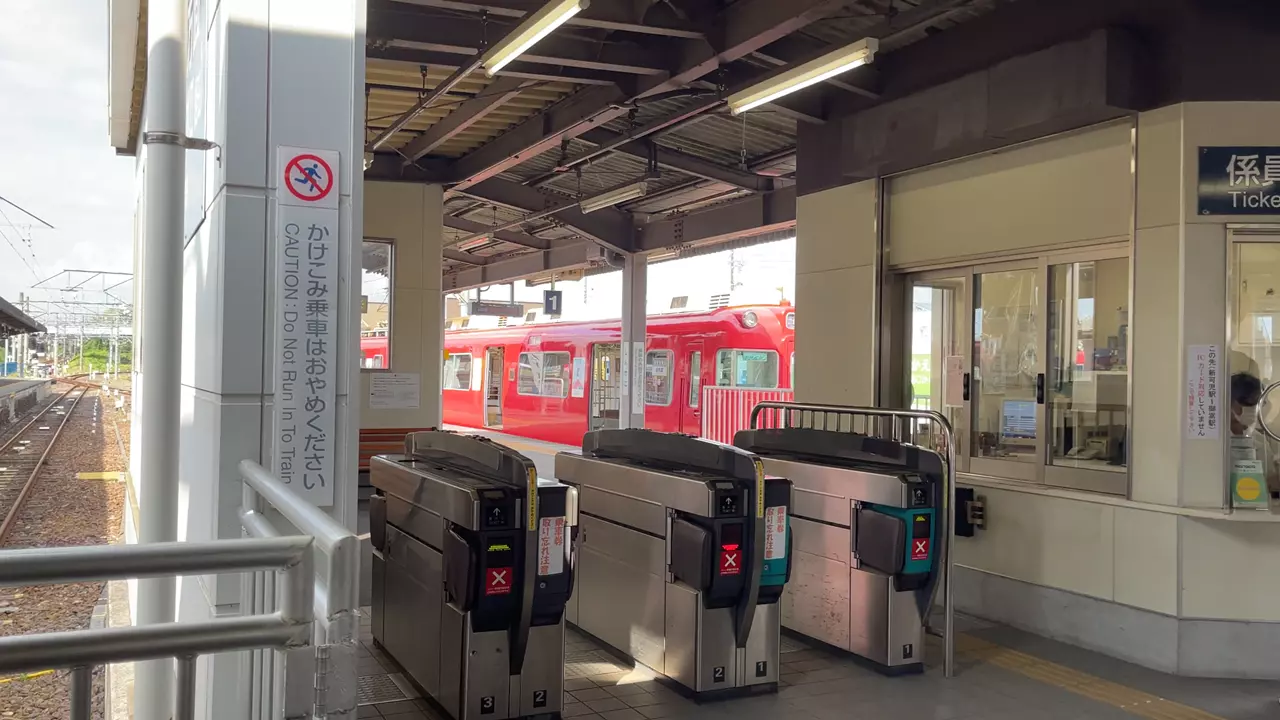 電車は河和線の途中駅である富貴駅に到着。河和線はまだ続きますが、ここで一旦下車します。