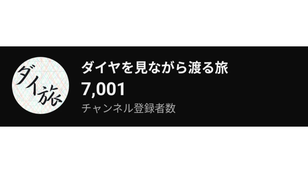 日頃より当チャンネルの動画・ブログをご覧いただきありがとうございます!先日、当チャンネル「ダイヤを見ながら渡る旅」のチャンネル登録者数が7000人に到達しました!